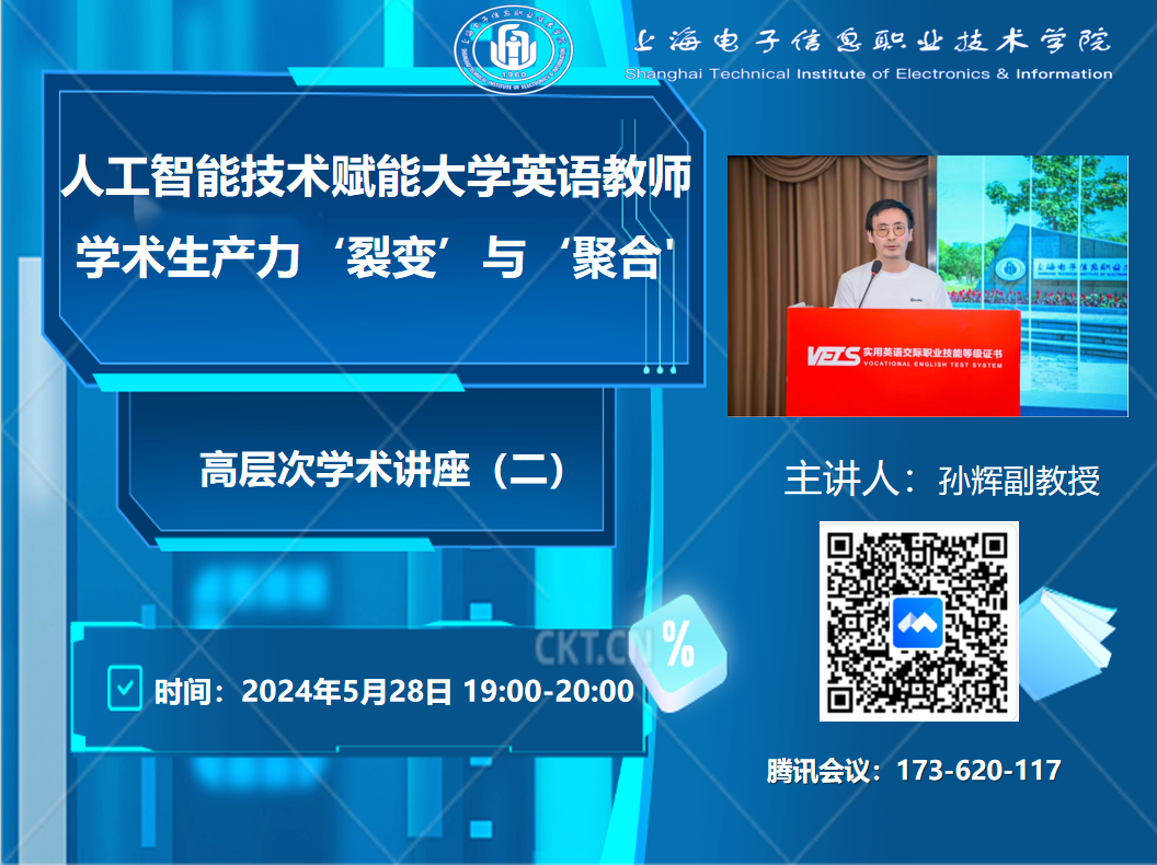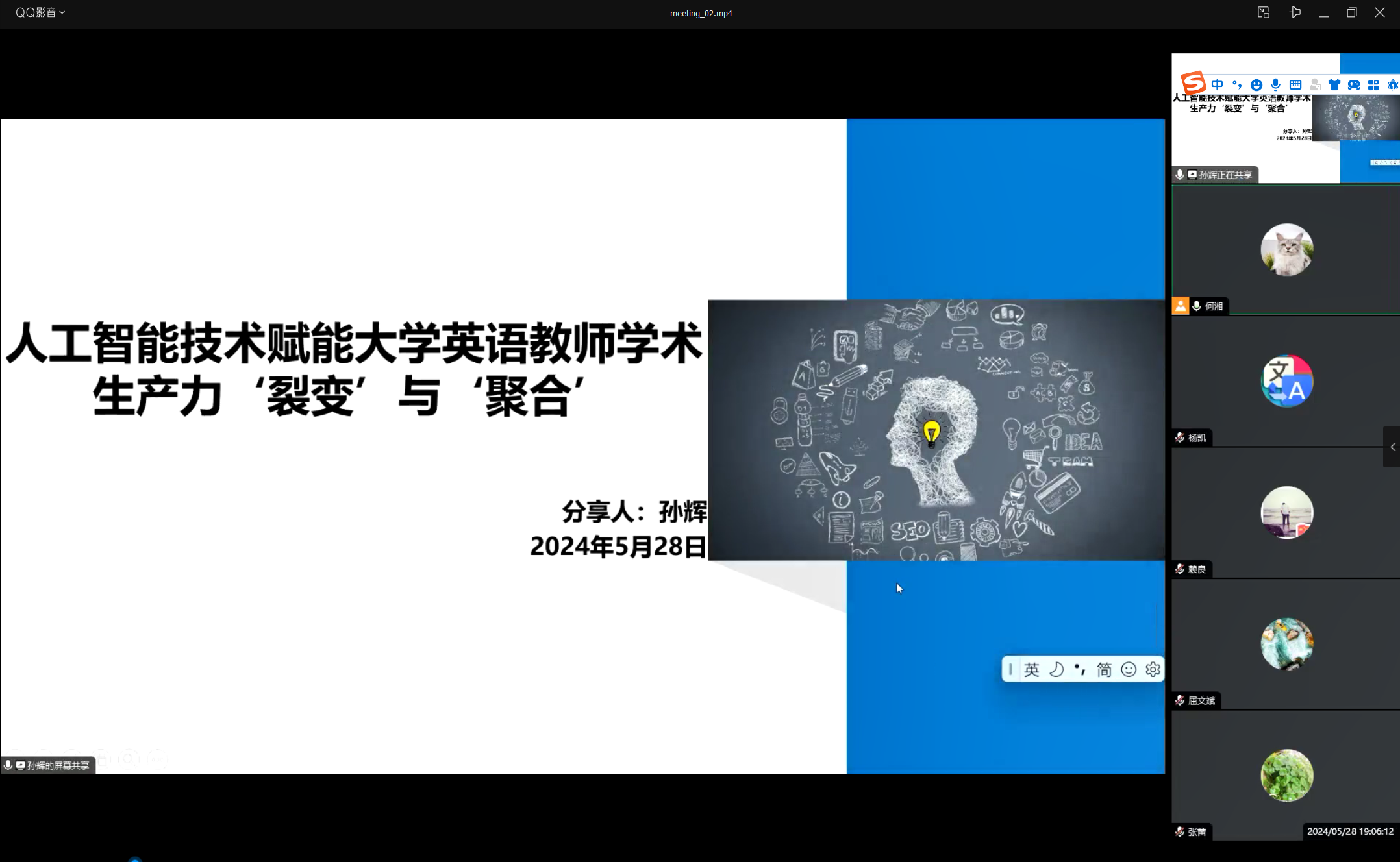 讲座由学院孙辉副教授担任主讲人,围绕《人工智能技术赋能大学英语教师学术生产力“裂变”与“聚合”》主题展开了精彩的分享。孙老师深入浅出地介绍了人工智能新质力的概念,指出面对当前外语学科发展的巨大挑战,外语教师应该主动了解国家发展新质生产力的重大政策方向,积极探索服务于我校重点学科专业群的新路径与新方式,并聚焦翻译技术课程,详细阐述了计算机辅助翻译技术在外语学科新质生产力发展中的重要地位。讲座通过实际案例的展示,描述了如何将技术融入外语学术力的裂变链和聚合链中,如何做到教学与科研相辅相成,真正实现提高学生的学习成效和学习乐趣,不忘教育的初心。多位老师也积极参与互动,围绕教学与科研工作的平衡、小语种开展翻译技术研究以及可视化文献检索等话题进行交流探索。