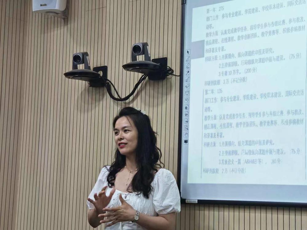 李聪莉老师就本年度即将验收项目情况和成果经验做了汇报。王华博士等2022年引进高层次人才就项目执行过程、工作感悟进行交流。并就高层次人才激励任务、科研启动任务等各项重点工作指标分配做了经验分享,并对后续探索“外语+”、外语产学研项目等研究思路做了介绍。