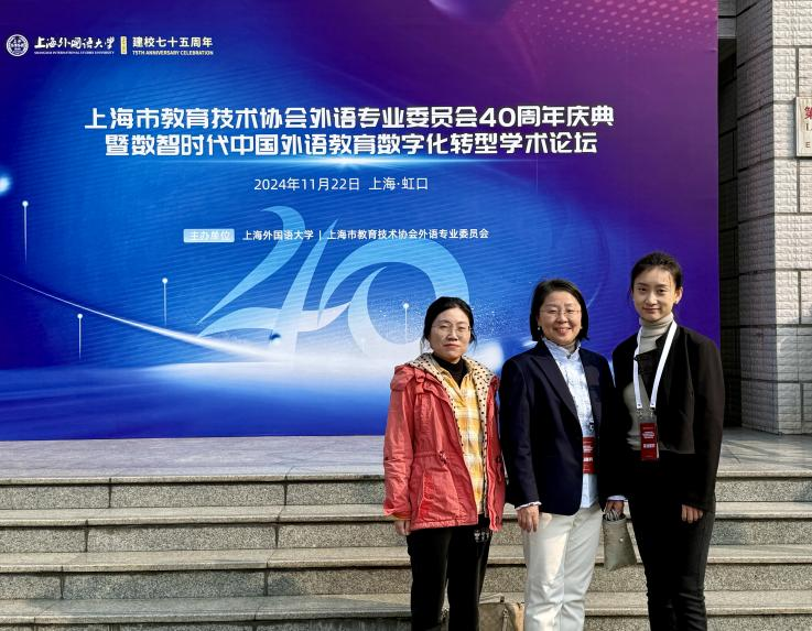 2024 年11月22日,上海市教育技术协会外语专业委员会 40 周年庆典暨数智时代中国外语教育数字化转型学术论坛在上海外国语大学盛大开幕。本次活动汇聚了外语教育领域的众多专家学者、教育从业者以及相关企业代表,共同回顾专委会 40 年发展历程。上海电子信息职业技术学院外语学院肖潇院长、德语教师顾婷婷,英语教师王沁受邀参会,学习探讨数智时代外语教育数字化转型的前沿话题与未来方向。
