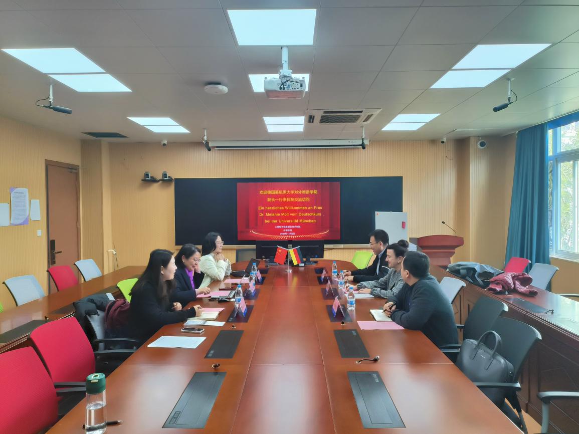 12月2日,德国慕尼黑大学对外德语学院(Deutschkurse bei der Universität München)院长Melanie Moll博士及其中国代表处代表赴我院交流访问,外语学院院长肖潇,学院办公室(国际交流中心)副主任邱娟及德语专业主任参加了交流。