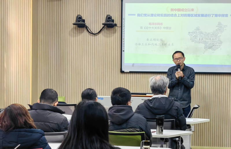 党的二十届三中全会进一步全面深化改革的总目标,指出要完善实施区域协调发展战略机制构建优势互补的区域经济布局和国土空间体系。区域协调发展是党实现一盘联动东西南北、统筹国内外发展的大棋局,是实现共同富裕、共同实现现代化的重要路径。谢国日老师以区域协调发展大棋局”为题,用生动的语言、详实的案例梳理了新中国成立以来我们党从理论和实践的结合上对统筹区域发展进行的探索历程,讲解了新时代以来以习近平同志为核心的党中央提出的新发展理念、行动举措和实践成果。阐述了党的二十届三中全会关于区域协调发展作出战略部署。