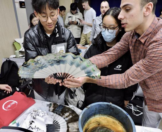 漆扇是中国传统文化中一项独具特色的工艺品,它不仅凝聚了工匠们的智慧和汗水,更承载了中华民族深厚的文化底蕴。活动中,外国友人与同学们一起制作传统漆扇,不仅增进了对中国传统文化的了解,也促进了中外师生间的互动与沟通。