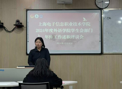 各部门负责人紧扣思想引领、工作成果、道德品行、纪律作风、学习情况等关键维度,对2024年度工作进行全方位、深层次的述职汇报。学生干部们回顾总结了过去一年学生会在各项工作中的突出表现与显著成效,如成功举办系列文化交流活动,有效提升学生外语实践能力;积极组织志愿服务,增强学生社会责任感等。同时,以实事求是的态度深入剖析工作中存在的问题,如活动策划的细节漏洞、部门间协作的沟通不畅等,并针对性地提出改进策略,包括优化活动策划流程、建立定期沟通协调机制等,还对未来工作制定了清晰的发展规划,明确了工作重点与目标方向。