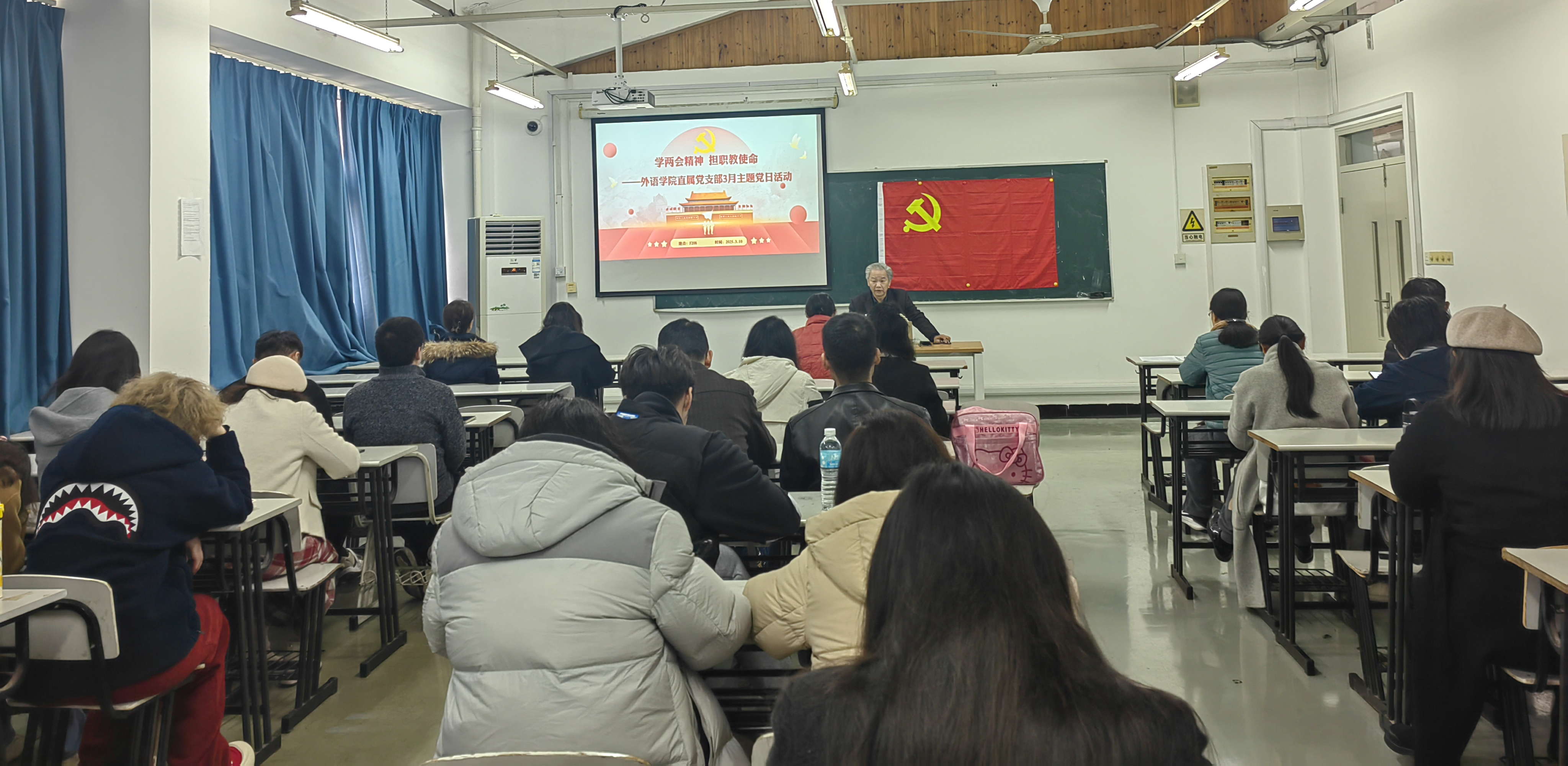 3月10日,外语学院直属党支部在F208教室开展了“学两会精神 担职教使命”3月主题党日活动暨党员集中学习培训,本次活动由外语学院直属党支部书记吴亚人主持,全体党员参与。活动聚焦两会热点,深入探讨科技强国战略,同时对2024年度组织生活会相关工作进行了安排部署。