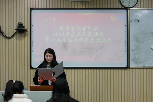 外语学院学生会于2025年3月举行了2024年度工作总结暨第七届主席团轮值交接仪式。此次活动既是对过往一年工作的全面梳理,也是学生会新老成员之间使命与担当的交接,承载着对未来发展的美好期许。