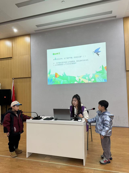 环保知识讲解后,紧张有趣的知识竞答环节将活动推向高潮。竞答题目紧密围绕环保知识,涵盖垃圾分类和生态保护等多个方面。经过激烈的竞争,三个小朋友脱颖而出,获得了环保主题小礼品,进一步激发了他们学习知识的热情。