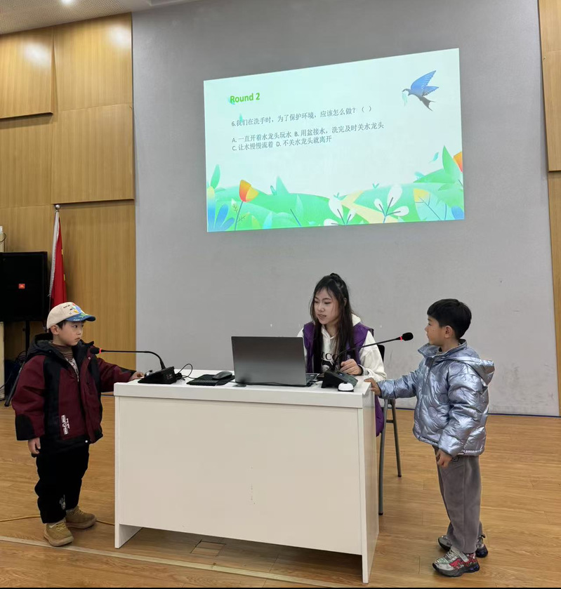 环保知识竞答:萌娃智趣比拼。紧随环保知识讲解之后,随即展开了一场别开生面的环保知识擂台赛。小朋友们摇身一变,成为“环保小博士”,展开了激烈的角逐。经过多轮紧张比拼,最终三位小选手凭借扎实的知识储备脱颖而出,赢得了比赛及奖品。
