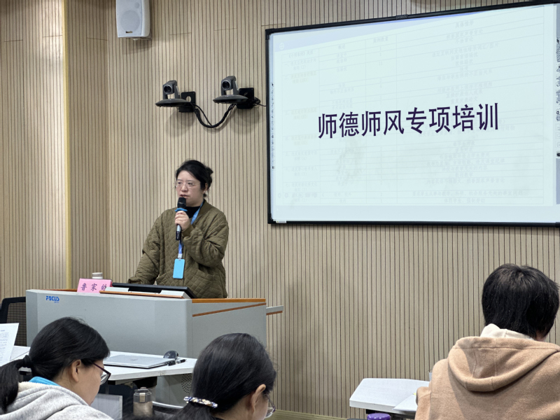 4月3日,外语学院举办师德师风建设专题培训。培训邀请教师工作部副部长作辅导报告。学院全体教师参会,活动由外语学院负责人主持。