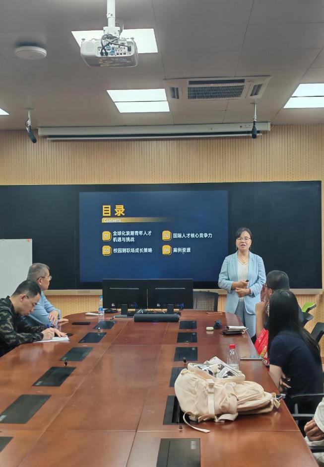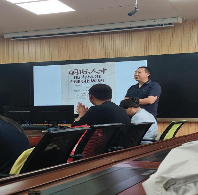 2025年5月22日下午1时许,外语学院联合策马集团在奉贤校区A111教室举办“国际人才能力标准与职业规划”主题宣讲会。上海策马集团总经理张丽、副总经理姜峰,外语学院直属党支部副书记、副院长茌良计,辅导员杨凯及23级和部分毕业班学生参加了宣讲会。活动聚焦国际化人才培养路径,为学生职业发展提供前瞻性指导及就业指导。