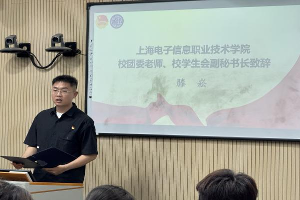 正式会议在庄严的国歌声中拉开序幕。校团委老师、校学生会副秘书长滕崧致辞,他肯定了上一届学生会在思想引领、校园文化建设、服务同学成长等方面取得的优异成绩,强调学生会需持续深化改革,主动适应同学新需求,加强自身建设,并对全体学生代表提出殷切期望。