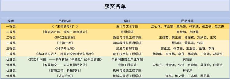 最终,大赛评选出一等奖1名、二等奖2名、三等奖3名、优胜奖4名,充分肯定了选手们的创意与科学素养。
