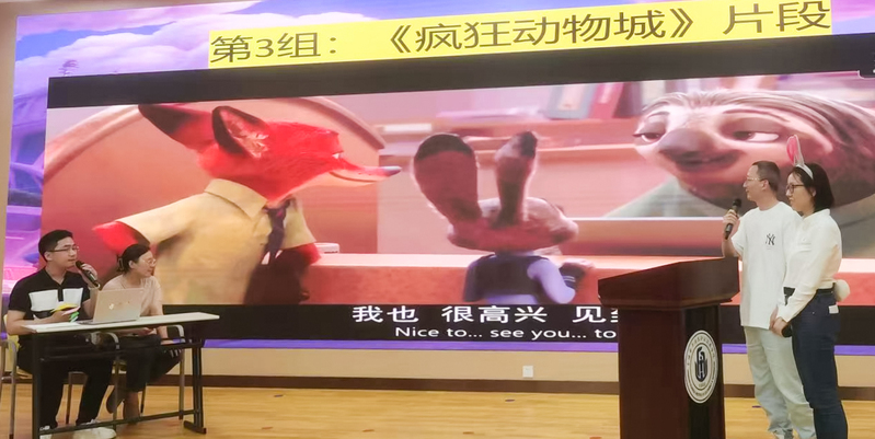 肖潇代表承办单位讲话,她用中英双语真挚感谢学校的平台赋能,让外语学院以语言为桥、文化为媒,为校园文化建设注入新的活力。比赛中,选手们以声音演绎经典,倾注创意与激情,不仅展现了跨文化交流的独特魅力,更传递了作品深层的情感与精神。后勤保卫处工会、外语工会、马克思主义学院工会的参赛老师联袂登场,倾情呈现了上海城市宣传片《Shanghai》、“一带一路”国际形象网宣片《Belt and Road》以及中国共产党国际形象网宣片《CPC》,令观众领略了新时代中国都市的璀璨风采,聆听了党和国家向世界发出的时代强音。中德工程学院工会、机关工会、电子技术与工程学院工会以及经济与管理学院工会的老师,分别呈现了《疯狂动物城》和《帕丁顿熊》这两部影片的经典片段对话,引领观众踏入了奇妙的世界和趣味的冒险之旅,各自风格鲜明,精彩迭起。通信与信息工程学院工会和机械与能源工程学院工会的老师们,则共同演绎了《当幸福来敲门》中父子的经典对话。他们以声音为笔细腻地勾勒出角色内心的波澜,深刻地诠释了影片所传递的积极向上、百折不挠的生活态度,为大赛增色不少。
