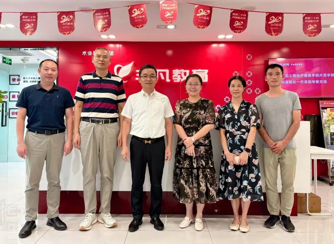 为深入贯彻落实国家关于职业教育产教融合的决策部署,进一步拓宽学生就业渠道,深化校企协同育人机制,8月15日下午,上海电子信息职业技术学院外语学院党支部书记、院长肖潇,副书记、副院长茌良计,副院长邓玉华,专任教师赖良一行赴上海非凡进修学院总部开展考察交流活动。