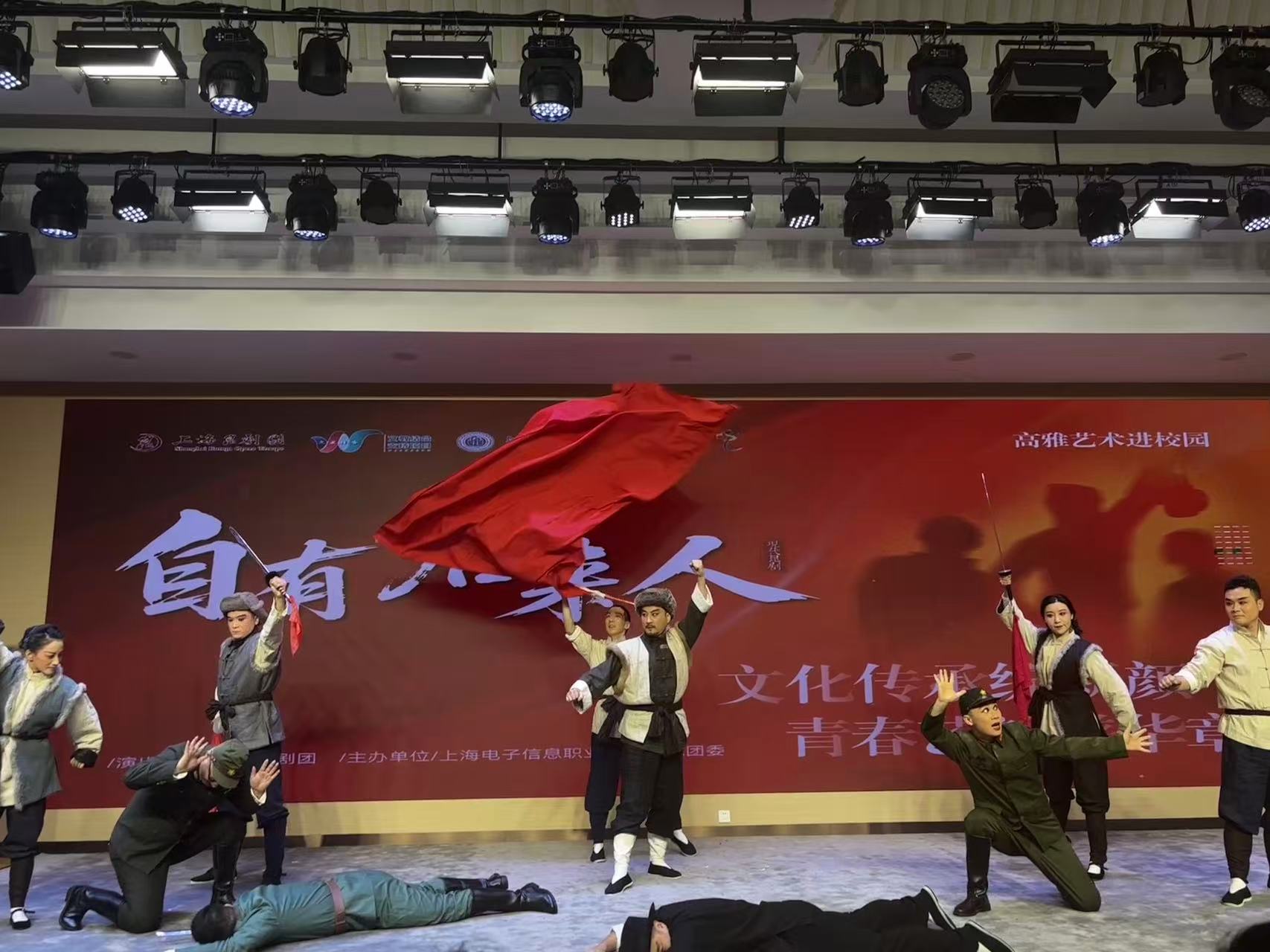 演出现场,上海昆剧团艺术家们以婉转悠扬的唱腔、细腻传神的身段,将昆剧的典雅特质与现代剧情深度融合,既延续了传统戏曲的艺术精髓,又赋予作品鲜明的时代内涵。学生们全神贯注沉浸其中,时而为紧凑的剧情屏息,时而为精湛的演技赞叹,真切感受着传统艺术与红色主题碰撞出的独特魅力。演出结束后,学生们纷纷表示,此次观演体验颠覆了对传统戏曲的固有认知,昆剧的韵律之美、表演之精让人沉醉,更深刻体会到中华优秀传统文化在当代的生命力。