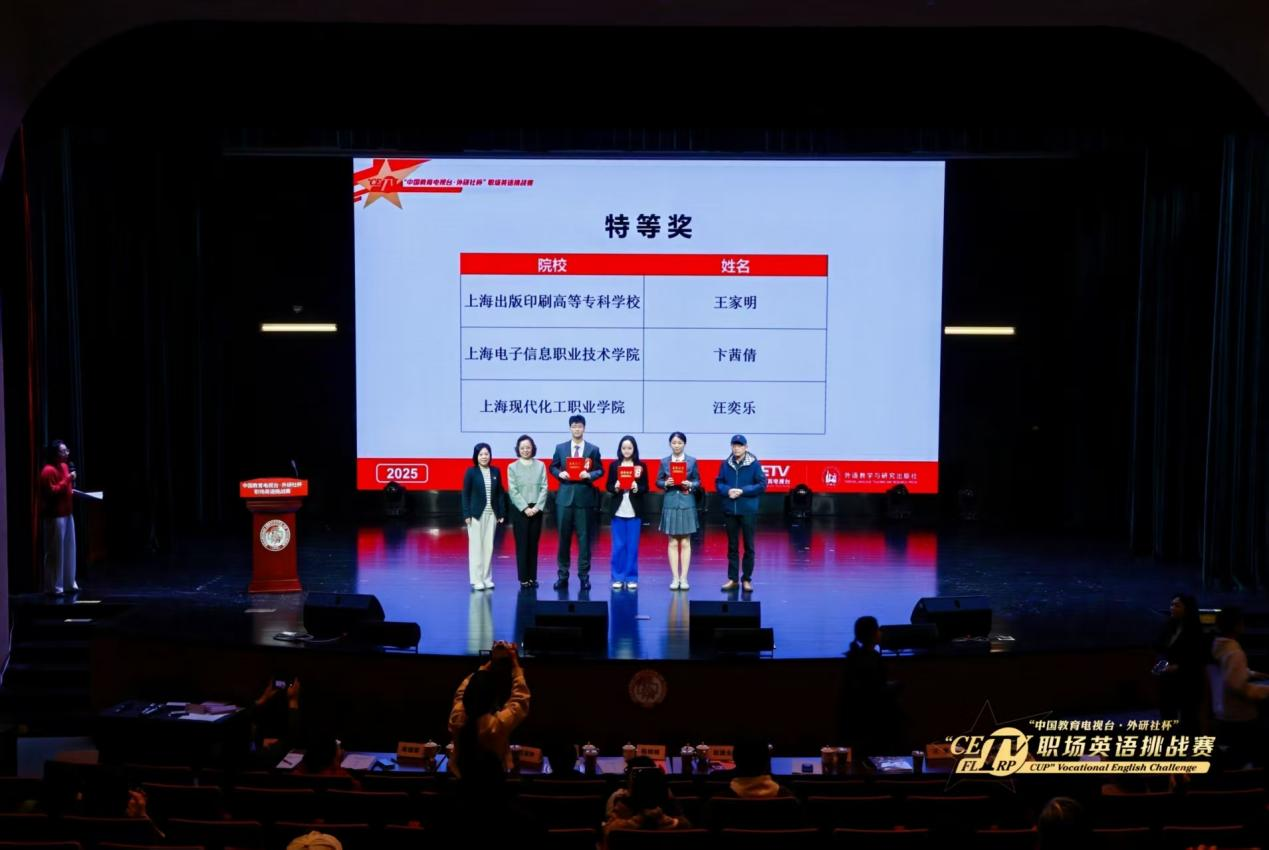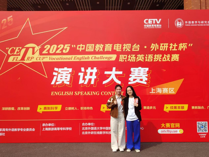 近日,2025“中国教育电视台外研社杯”职场英语挑战赛演讲大赛上海赛区决赛在上海旅游高等专科学校圆满落幕。我校参赛队员表现亮眼,卞茜倩、周思婷和郭浩三位同学从全市25所院校的61名选手中脱颖而出,分别斩获上海市特等奖、一等奖和二等奖,获特等奖的卞茜倩同学将代表上海市晋级全国总决赛。