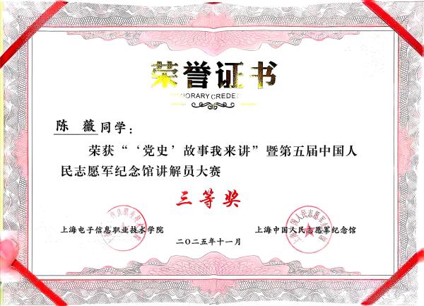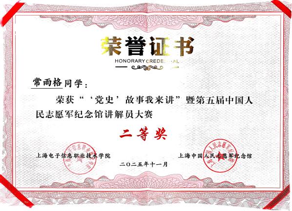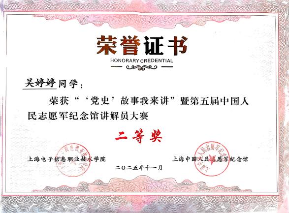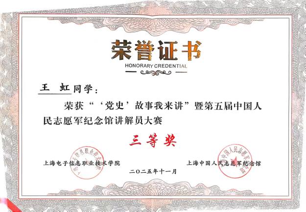 今年是中国人民志愿军抗美援朝出国作战75周年,为传承伟大抗美援朝精神,深化党史学习教育,引导青年学生厚植家国情怀,11月21日,我校与上海永福园(上海中国人民志愿军纪念馆)联合举办的“党史”故事我来讲暨第五届中国人民志愿军纪念馆讲解员大赛圆满落幕。外语学院积极组织学子参赛,凭借扎实的党史素养、出色的语言表达和真挚的情感传递,在大赛中斩获佳绩,充分展现了外院学子的青春风采与责任担当。