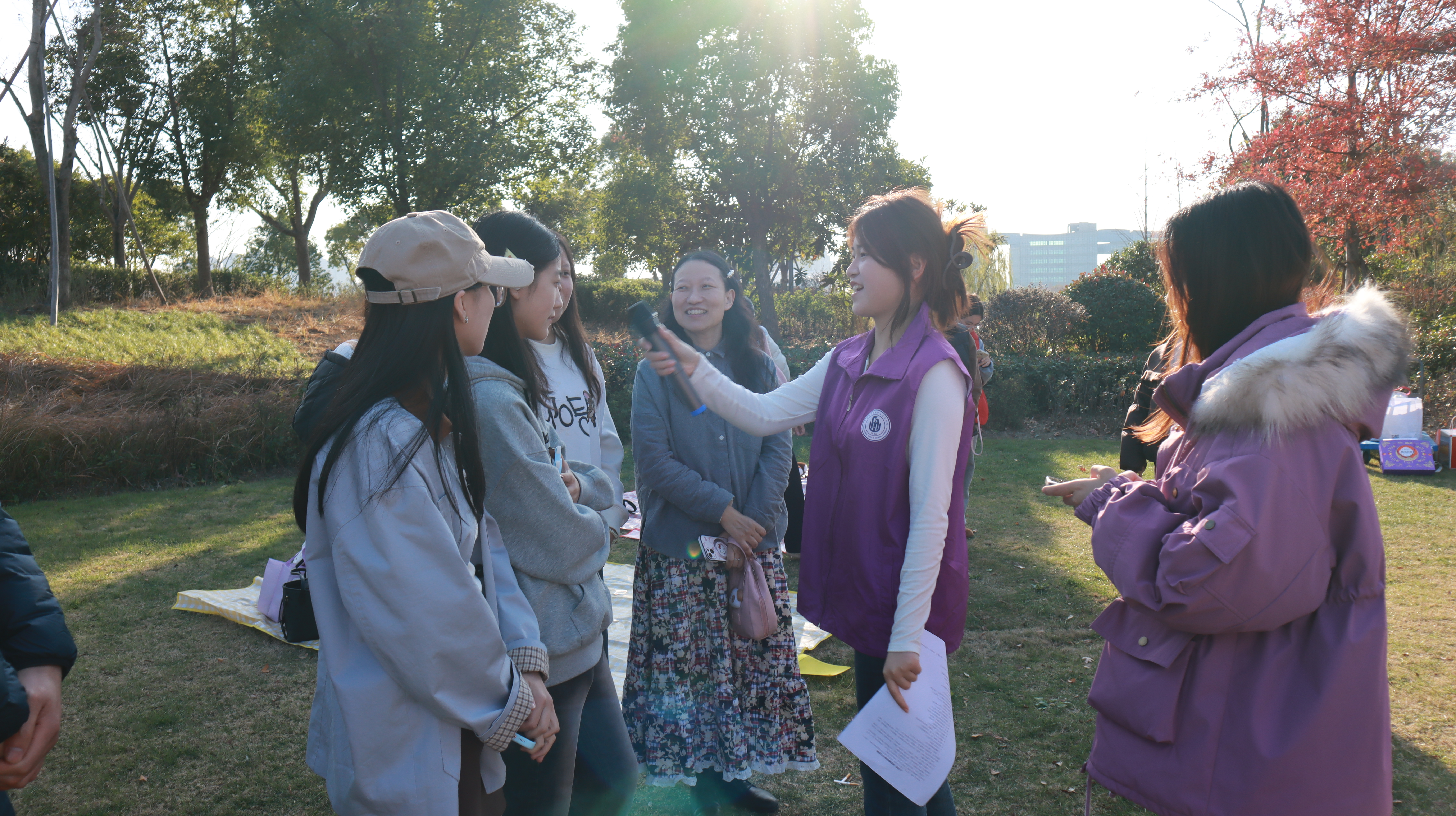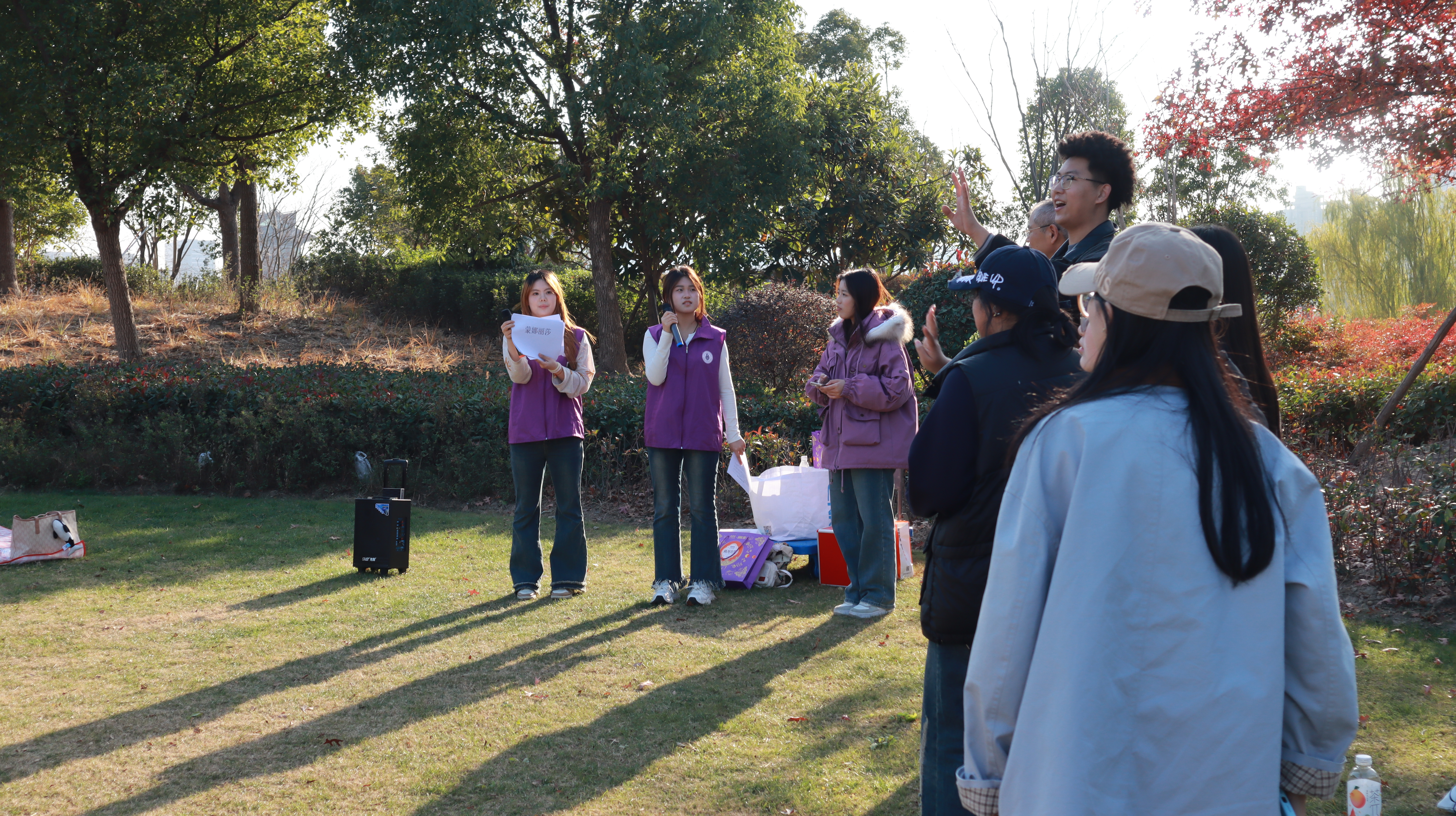 随后,师生们移步至湖心岛公园,趣味十足的互动游戏环节正式拉开帷幕。“动作传词赛”中,同学们用夸张生动的肢体动作传递“孙悟空”“吹泡泡”等趣味词语,滑稽的表现引得全场欢声笑语不断;“反向问答趣味赛”上,“宇宙外面有什么”“鲸鱼的伴侣是谁”等新奇问题引发大家脑洞大开,创意答案层出不穷,充分展现了同学们的思维活力;“谁是卧底”游戏里,卧底队凭借默契配合与巧妙掩饰成功闯关,赢得阵阵喝彩;此外,“零食盲盒互换”环节更是将现场氛围推向高潮,同学们在互换惊喜中收获了友谊与快乐。活动尾声,同学们通过抽签领取了定制书签等专属礼品,大家围坐在一起,分享日常学习生活中的感悟与收获,进一步加深了彼此的了解与信任。